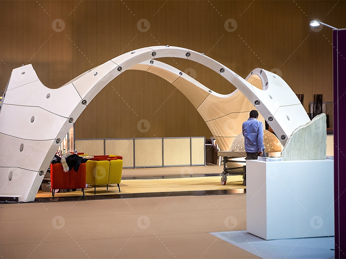 展會還關(guān)注石材設(shè)計的發(fā)展,并專門設(shè)立了一個設(shè)計作品展示區(qū),所有作品都是由設(shè)計委員會精選出來的。展品的80%由天然石材制成,主要為家具、擺件、餐具、墻面、地板、照明等,為廣大展會參與者提供了最新的設(shè)計靈感與理念。