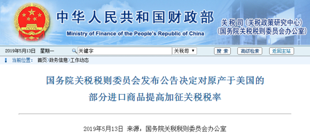 中美貿(mào)易摩擦再度升級。美方無視中方富有誠意的態(tài)度與行動,于華盛頓時間2019年5月10日0點(diǎn)01分開始,對2000億美元中國輸美商品加征的關(guān)稅從10%上調(diào)至25%。中方同步發(fā)表聲明,宣布不得不采取必要反制措施。