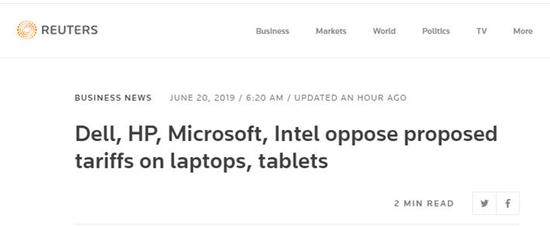 聯(lián)合聲明還援引美國消費(fèi)者技術(shù)協(xié)會近期的研究稱,如果計(jì)劃(加征)的關(guān)稅正式生效,將導(dǎo)致美國筆記本電腦和平板電腦價格提高至少19%,或者說,筆記本電腦的平均零售價將達(dá)約120美元。