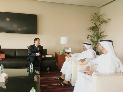 2019年6月23日,駐阿聯(lián)酋大使倪堅(jiān)會(huì)見阿聯(lián)酋外交與國(guó)際合作部政治事務(wù)部長(zhǎng)助理哈利法,東亞與太平洋司司長(zhǎng)艾哈邁德會(huì)見時(shí)在座。