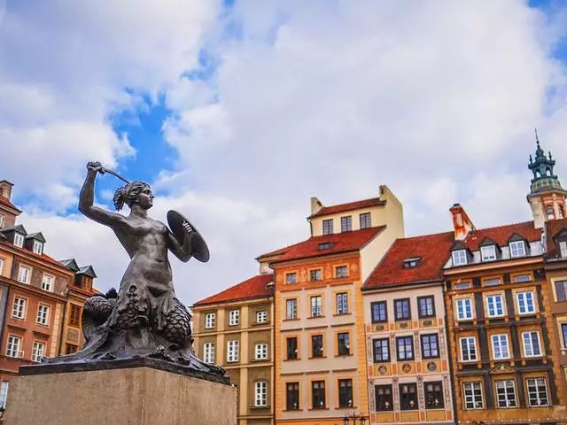 最吸引人的當是著名的美人魚雕像,這座手持利刃和盾牌的美人魚是華沙的標志,雖歷經(jīng)戰(zhàn)火卻至今并保存完整,就像波蘭人民堅強不屈的性格。