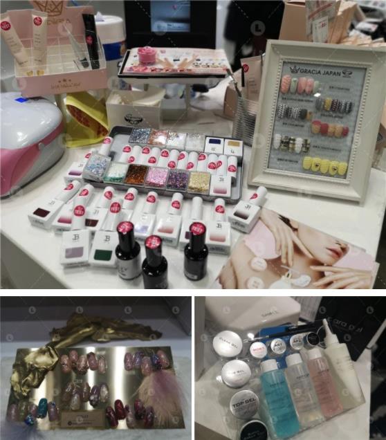 現(xiàn)場(chǎng)主要展品為美甲產(chǎn)品及配件。