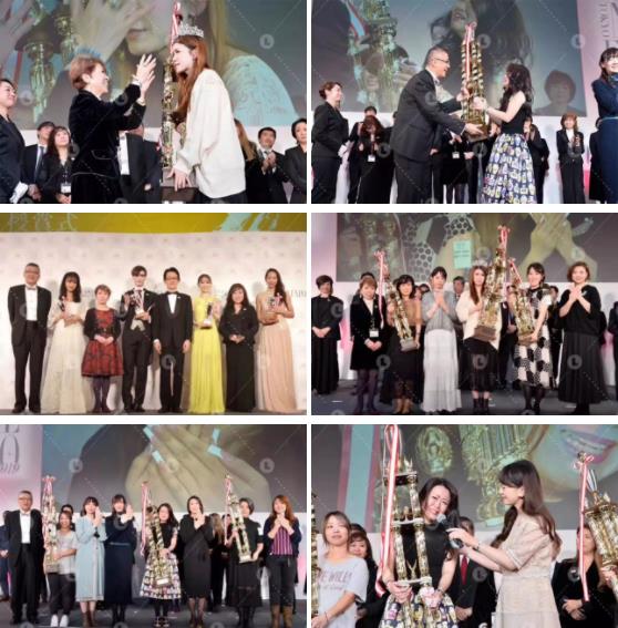 世界美甲師錦標(biāo)賽頒獎(jiǎng)冠軍吉川步美,第二名伊豆高子,第三名池松麻里子。