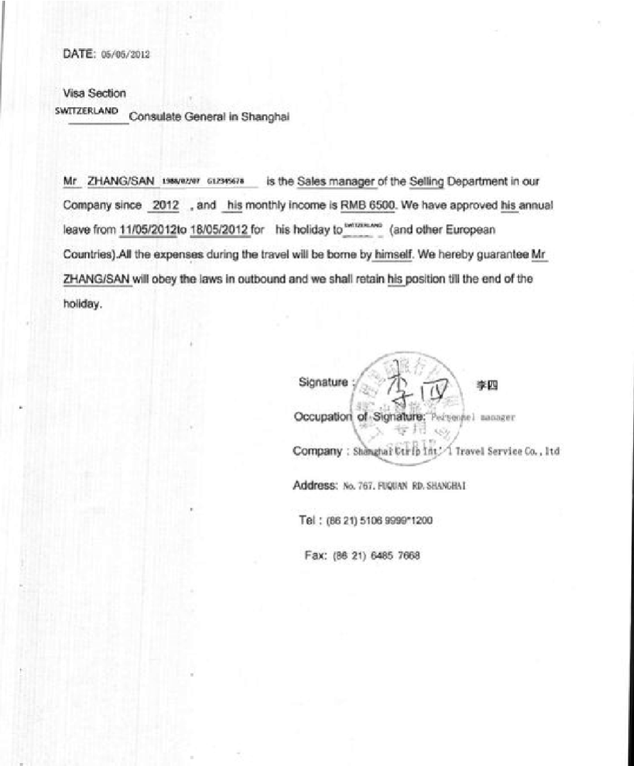 | * 英文在職證明 | 原件 | 本人所在單位的英文在職證明: 1、使用抬頭信紙打印,抬頭包括公司名稱、地址、電話和傳真; 2、人事或公司管理人員簽名,同行人不可以互相簽名。如申請(qǐng)人是法人代表,請(qǐng)人事或其他公司管理人員簽名; 3、蓋公司(公章)或(人力資源章)(二選一)。 | 查看樣例 |