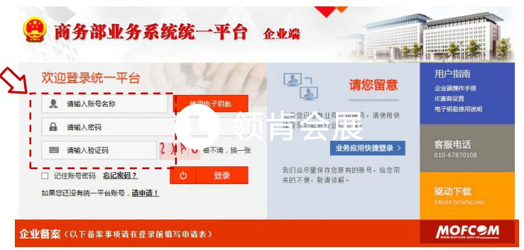 步驟3:將自動(dòng)轉(zhuǎn)至商務(wù)部業(yè)務(wù)系統(tǒng)統(tǒng)一平臺(tái)登錄頁(yè)面,輸入用戶名、密碼登錄。
